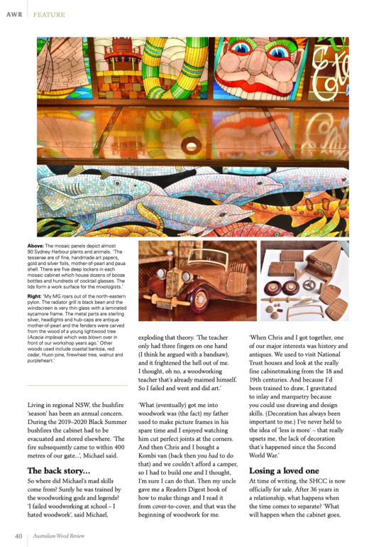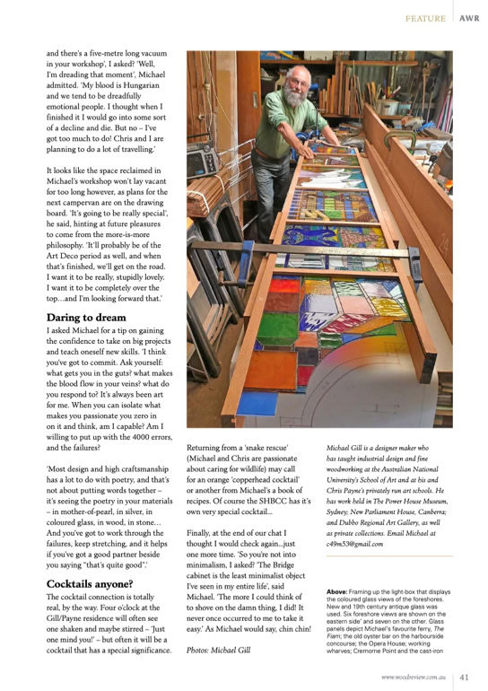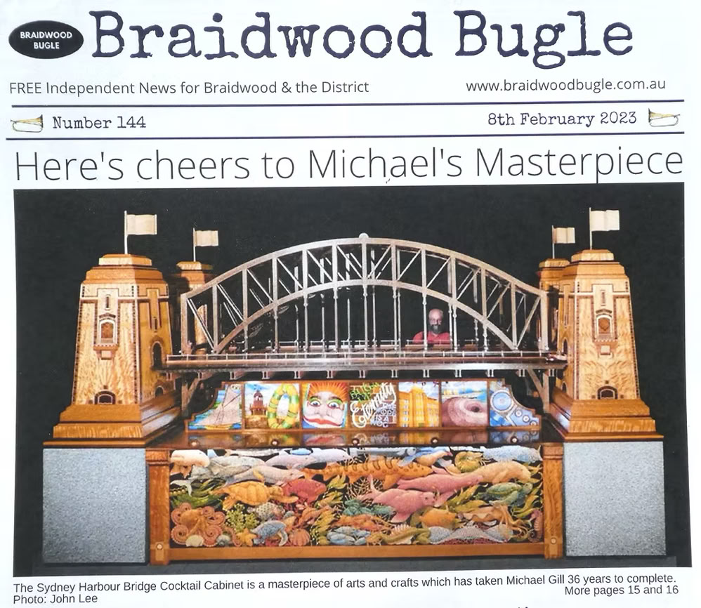 This year, now a maker of Fine Art Furniture, Michael finally launched his Sydney Harbour Cocktail Cabinet, his life's masterpiece.