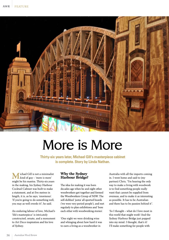 “Michael Gill is not a minimalist kind of guy – ‘More is More’ might be his mantra.” – Linda Nathan, in the Australian Wood Review